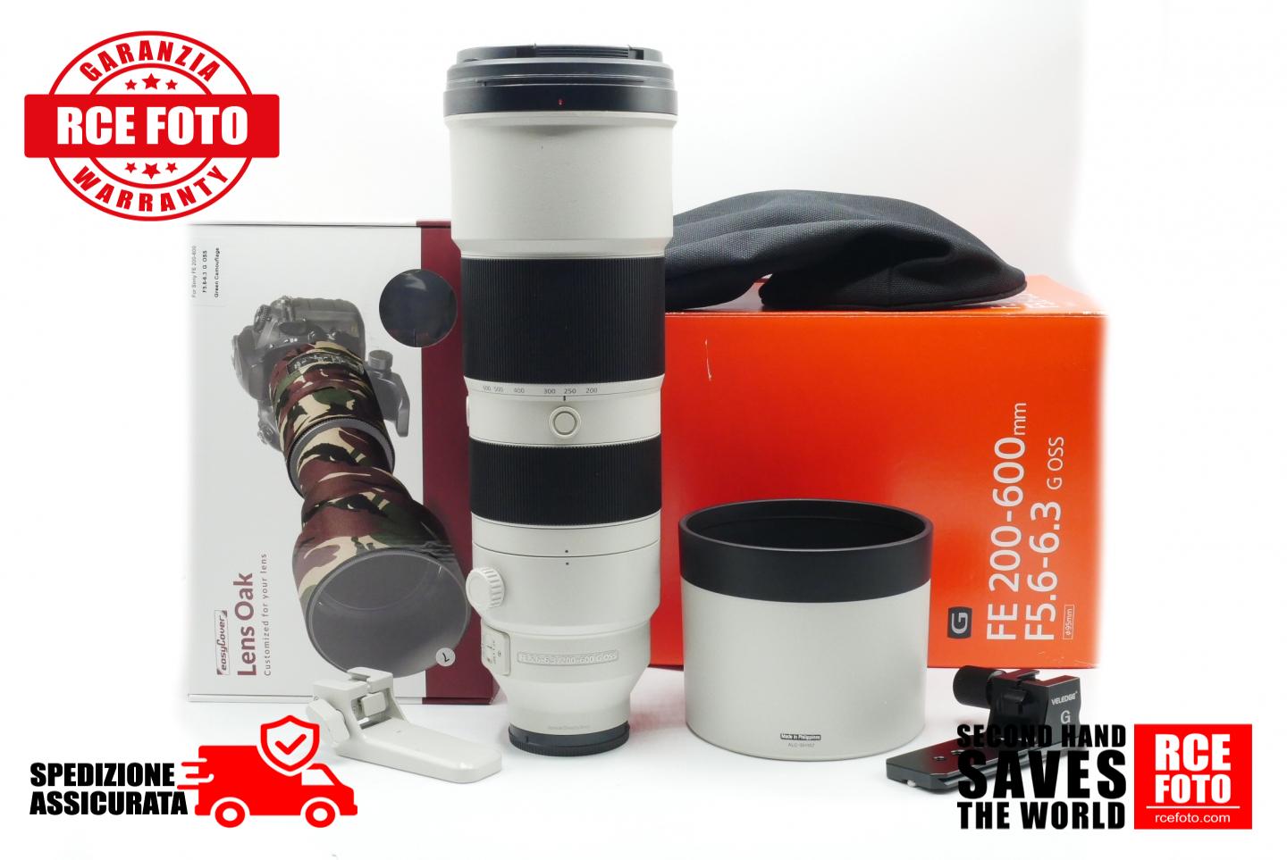 Spettacolare super tele per sistema Sony mirrorless FF e APSC corredato di secondo anello treppiede arcaswiss e lens coat camouflage ! Bellissimo !